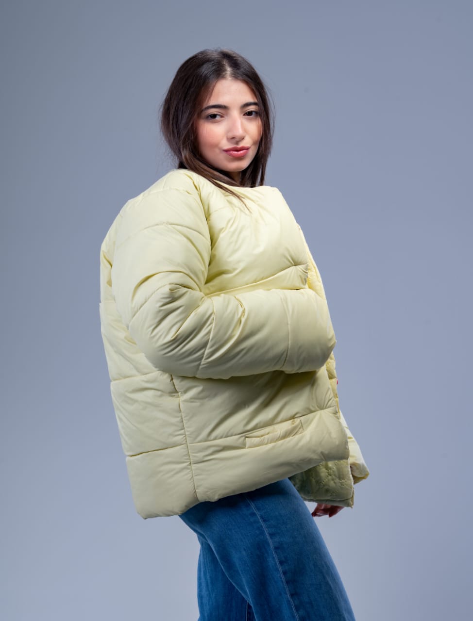 جاكيت حريمي أنيق باللون الأصفر، مصمّم بخامة ووتر بروف تحمي من المطر وتمنحك دفء ممتاز في الأجواء الباردة.