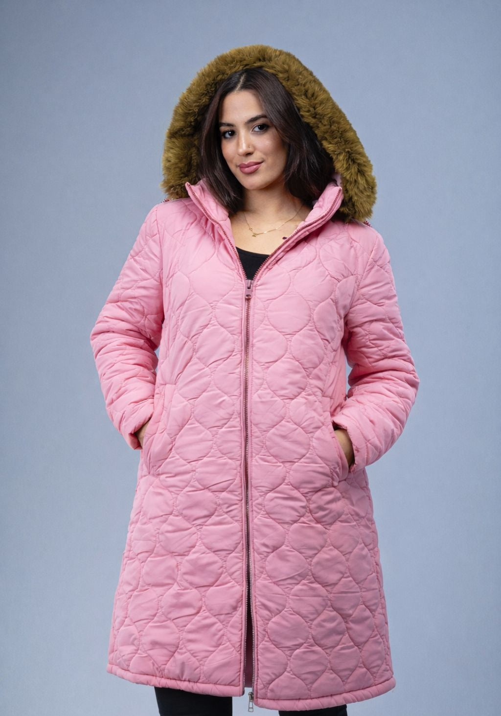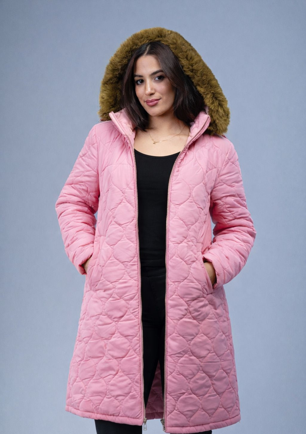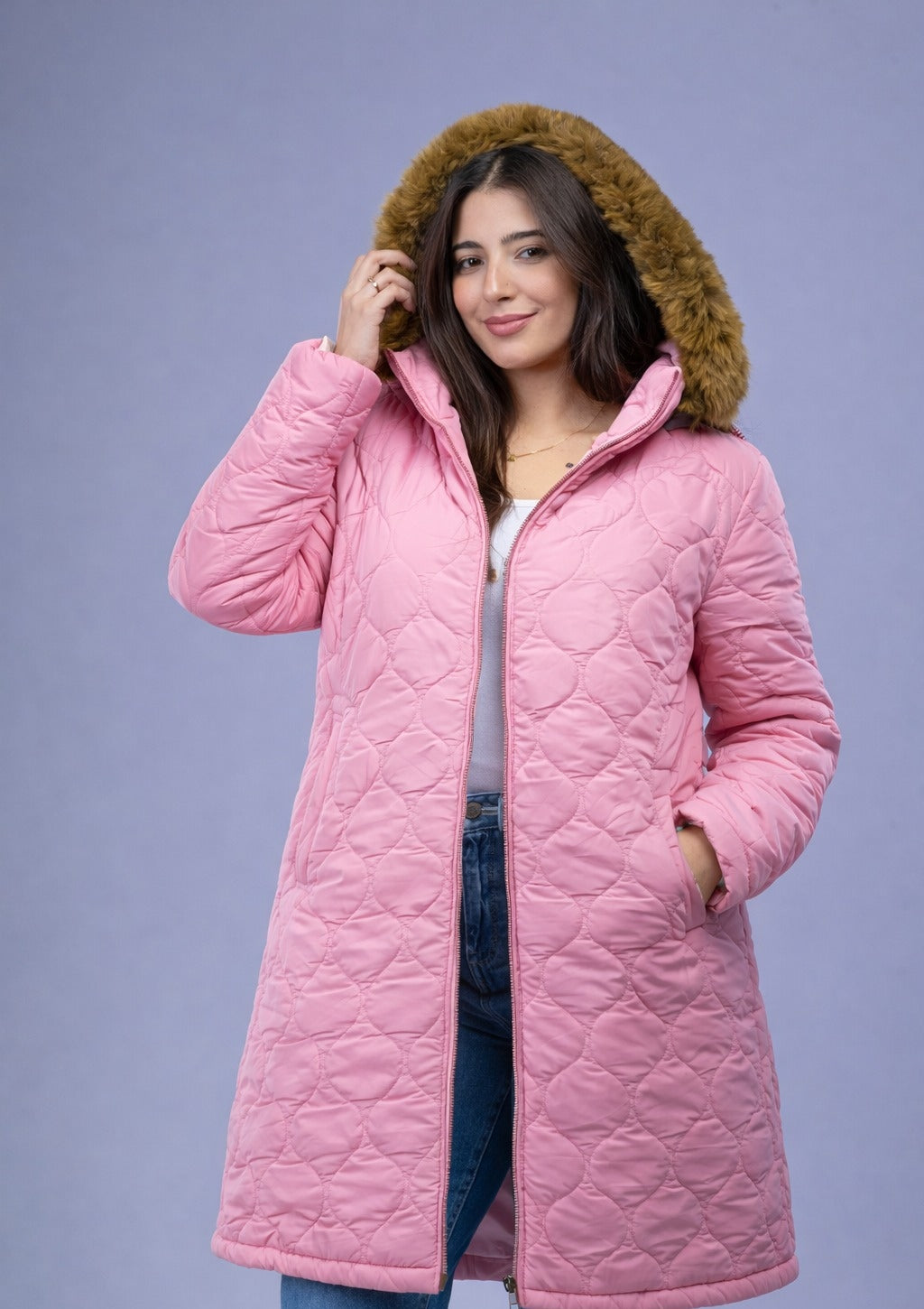 هاف بالطو نسائي بكاب مدمج وبـ قصّة واسعة (Loose Fit) علشان يديك راحة وأناقة في كل خروجة.