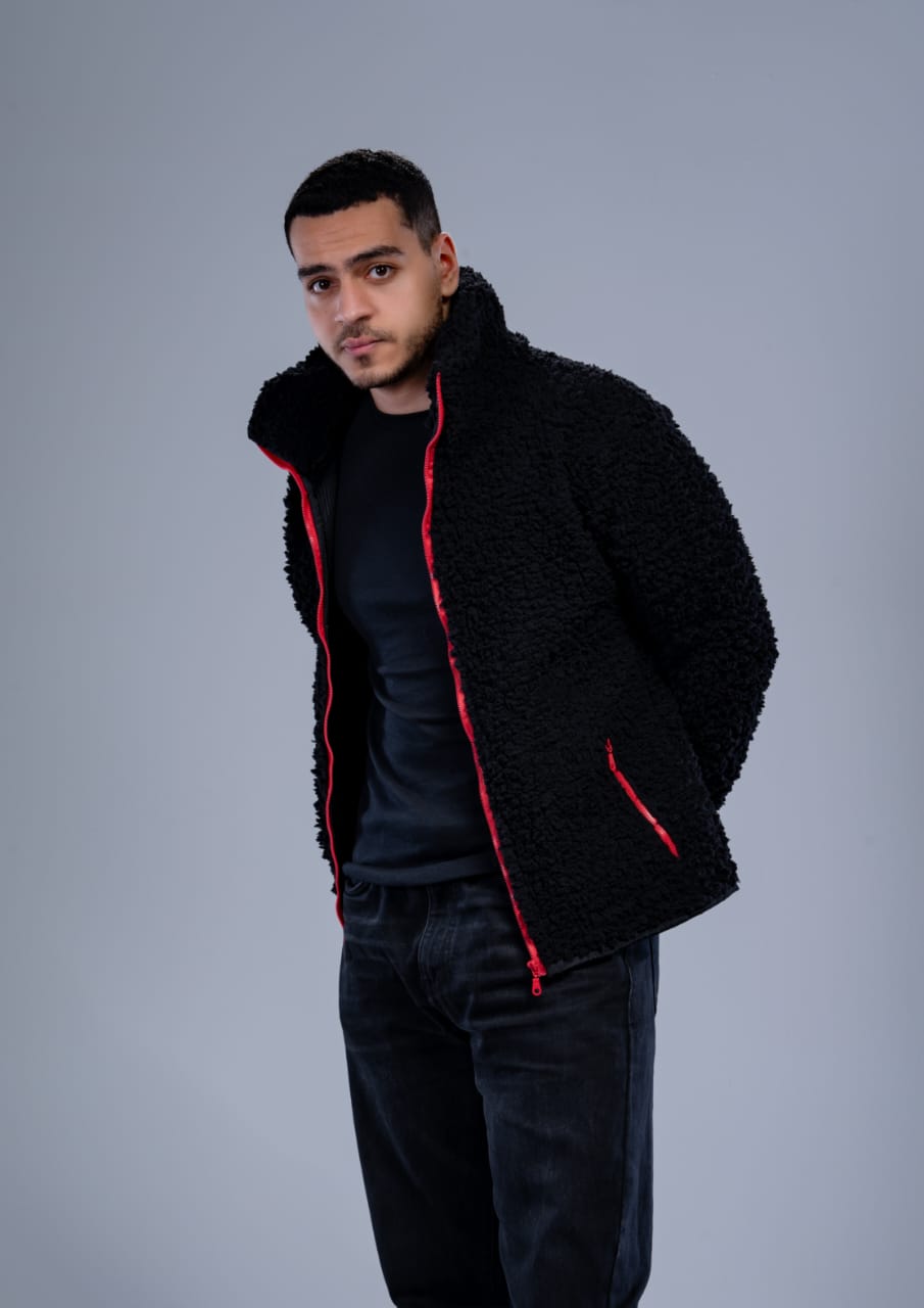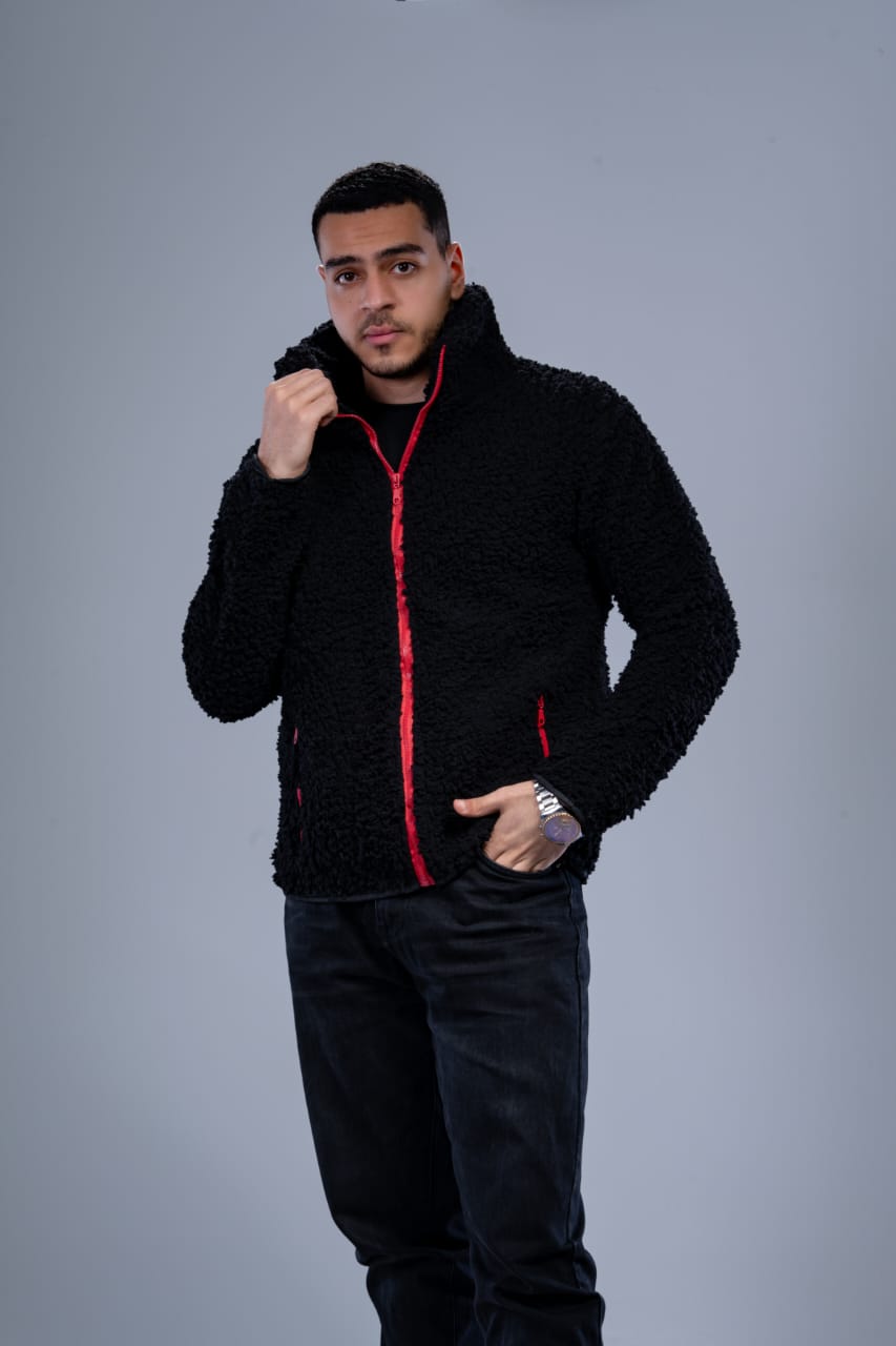 مصمم بـ ياقة عالية مُنسّقة تعطي شكل راقٍ وأنيق، مع سحّاب أمامي باللون الأحمر يضيف لمسة مودرن ملفتة.