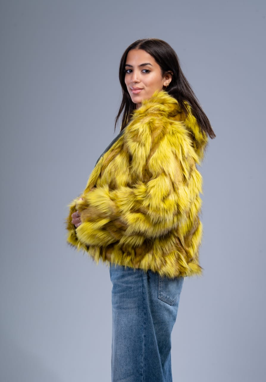 تصميم حصري ولون أصفر لافت يرفع أي إطلالة شتوية لمستوى أعلى من الفخامة.